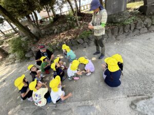 みんなで本当にツルツルなのか触ってみると、「ほんとうだ!」「ここが1番ツルツル!」と大発見!
