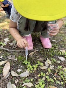 スポイトに水を入れ、葉っぱにかけてみると….?