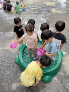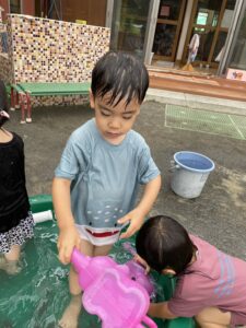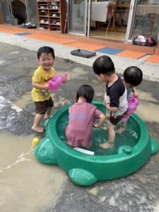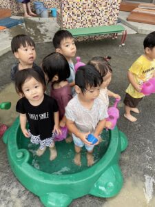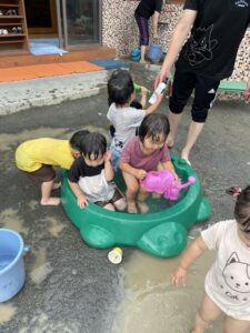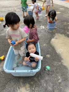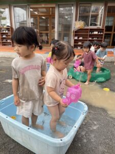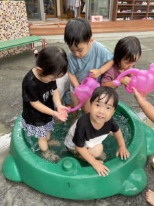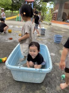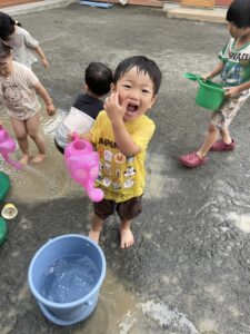 今日は水遊びをしました!