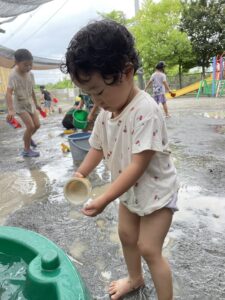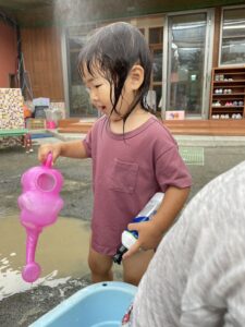 ジョウロで水を汲んで遊んだり、