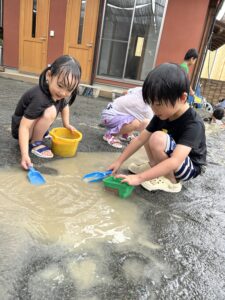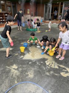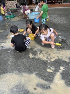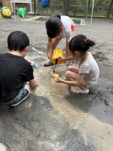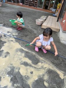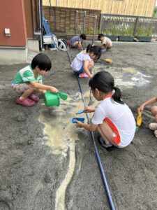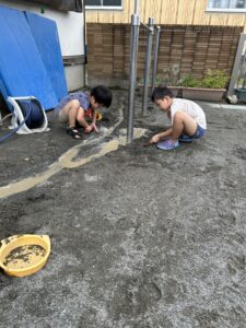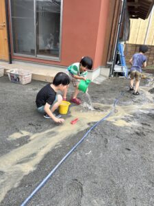 せっせと水を運ぶ子、川を掘る子、、