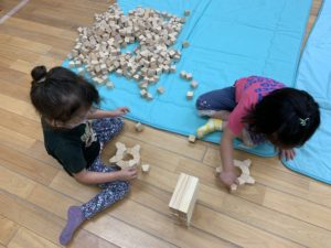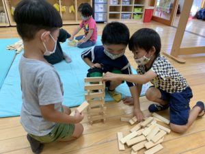 今日は夕方の室内遊び中に積み木で遊びました😊✨
