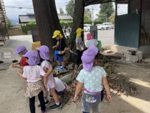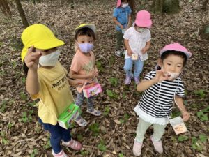 どのクラスも可愛いお散歩バックを持ち、木の実や葉っぱなど色々な物を探しています😌✨