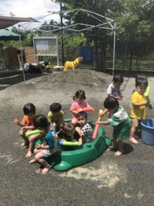 2歳児のみんなが楽しみにしていた水遊びが始まりました!