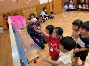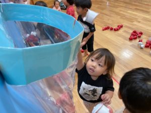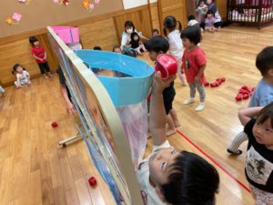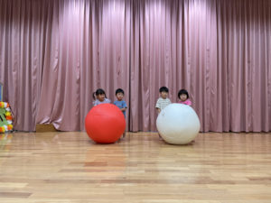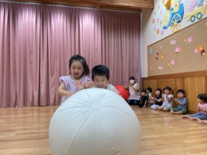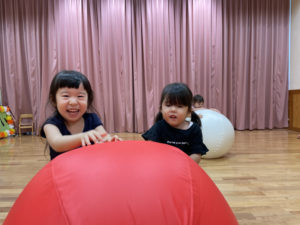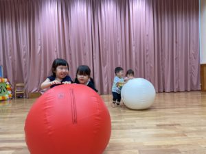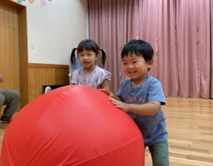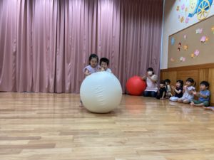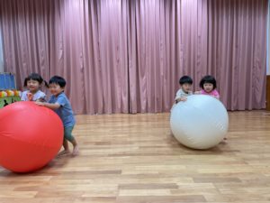 はじめて触る大玉にワクワクしながら、力を合わせて楽しみました✨