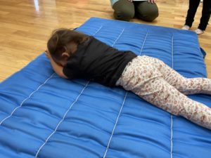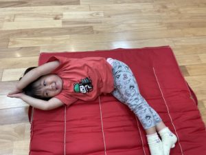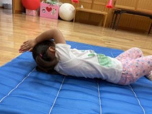 マットに横になり、手と足を伸ばしてコロコロと転がります🌟