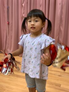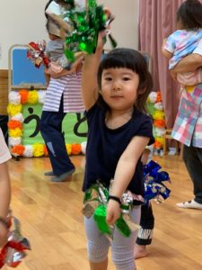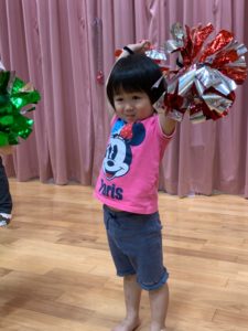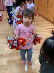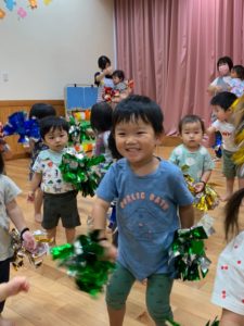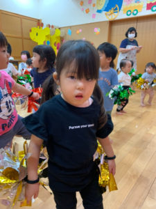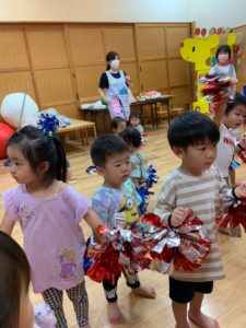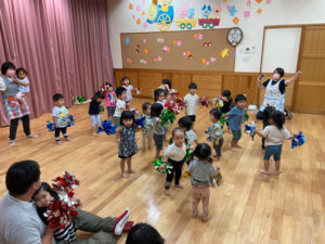 以上児さんたちの練習をよく見ていたうさぎ組さん、ポンポンを持って上手に踊ります🩰💕