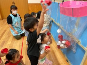 投げたり、背伸びをしたりして白熱の玉入れでした🔥