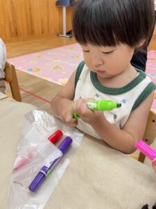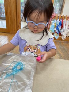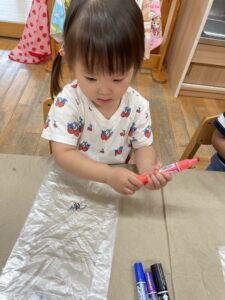 その後はビニール袋にオバケの絵を描きます🖼️!