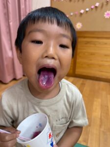 もも組さんからはかき氷カップとストロースプーンを使って食べました🍧スプーンで少しずつ口に運んで…「美味しい❗️」