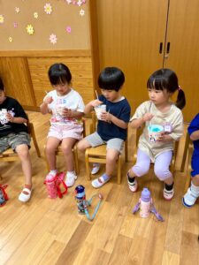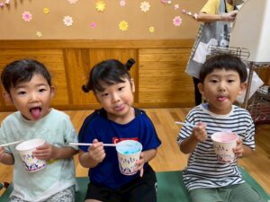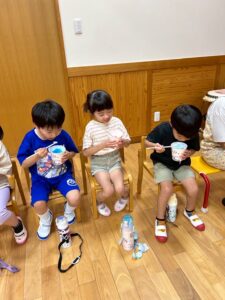 みんなで輪になって楽しいおやつの時間を過ごしました🍀次のかき氷も楽しみだね✨(松山)