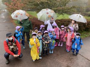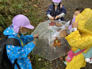 傘に葉っぱで飾り付けもしました!!雨の日ならではの活動です🌂💧