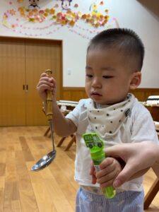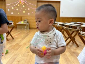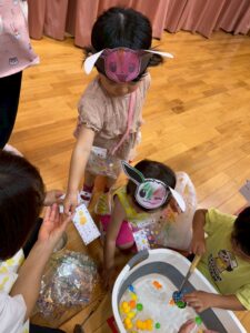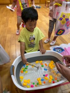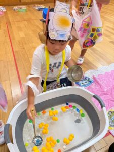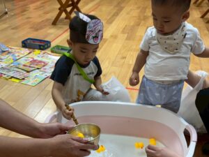 おたまを持ってひよこさんやスーパーボールを上手にすくいました🐥