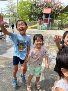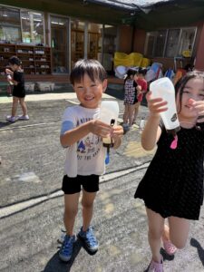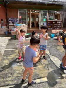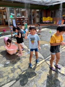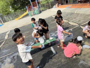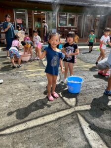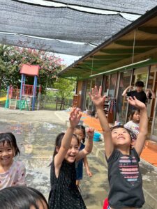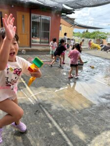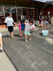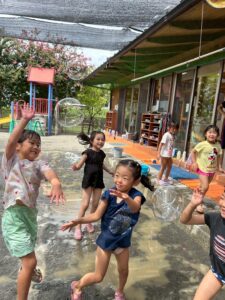 子どもたちだけでなく、先生たちもびしょ濡れになって大笑いした水遊びでした!
