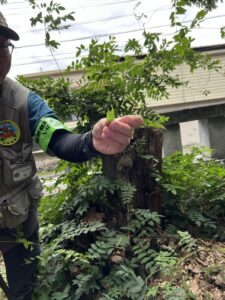 切った葉っぱを丸めて詰めて家を作るんだって。