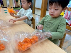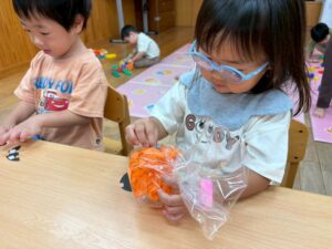 ぎゅぎゅっと力を込めて丸めるお友達や