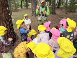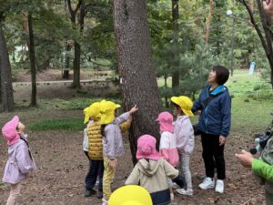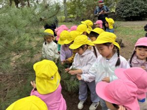 松が大きくなるとどの木になるかな?とみんなで探し回り見つけてタッチしてみました!