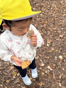 道中にこんなに大きなキノコを見つけたお友達が!🍄