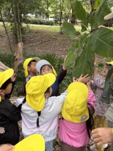 みんなの顔より、先生の顔より大きな葉っぱを見つけました!😳
