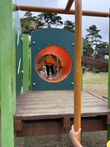 「こんな大きな遊具があったらなあ」と心の声が漏れているほしぐみさん笑