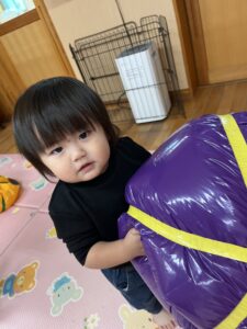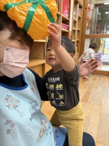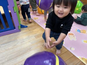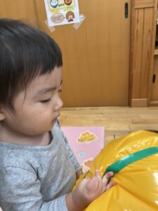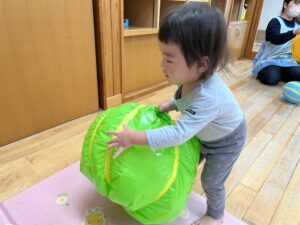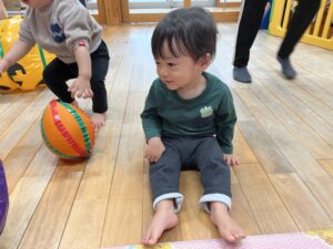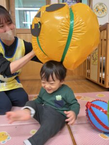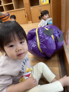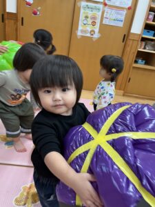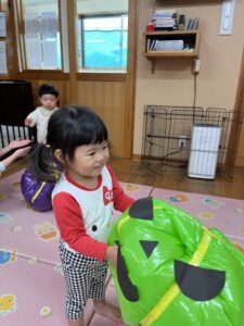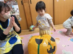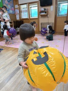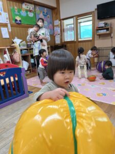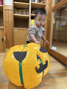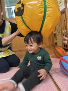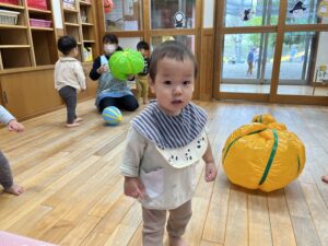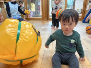 ポンポン弾む巨大かぼちゃに大興奮のお友達!雨の日もお部屋でたくさん体を動かすことができました✨