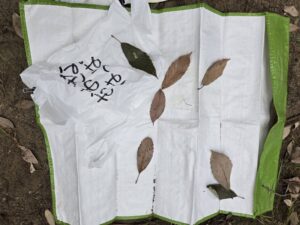 トゲトゲきのみ、大きな葉っぱ、丸い木の実