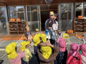 先生の出し物は、大きなカブのお話をアレンジした、🎃大きなハロウィンかぼちゃのお話でした🎃👻🎃