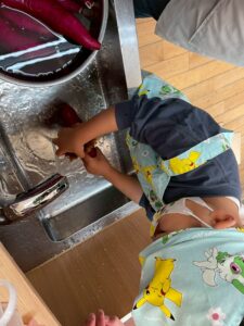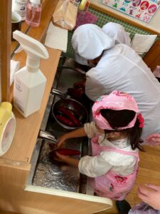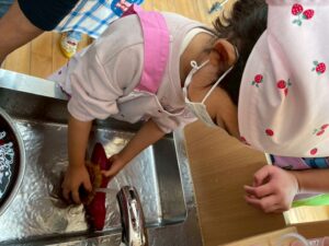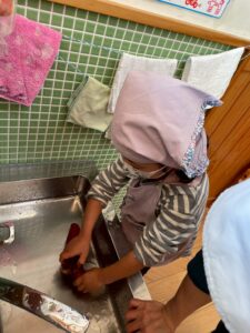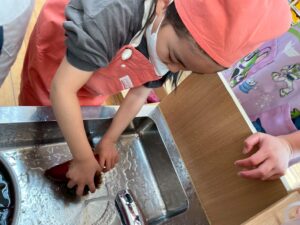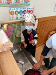 自分たちで洗って皮を剥いて料理のお手伝いをするとさらに美味しくなるね!❤️
