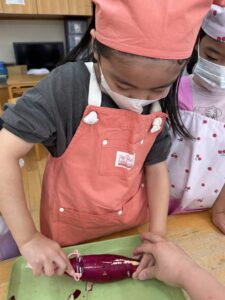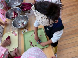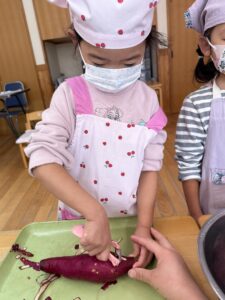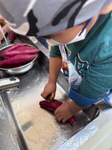 綺麗に洗い終わったら次はさつまいもの皮剥きです!