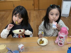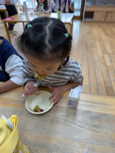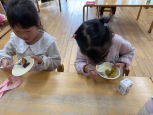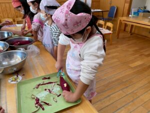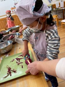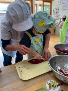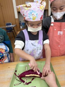みんなが皮を剥いてくれたさつまいもはおやつの” 大学いも “に変身!!