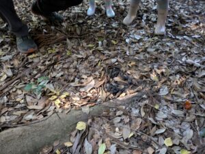 初めて見た、たぬきのうんちにみんな興味津々じっくり観察していました😄