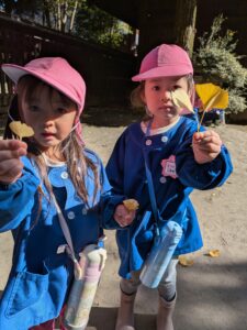 広場でもイチョウの葉っぱが落ちていて集めていました🥰