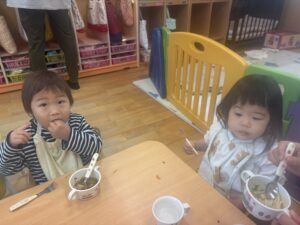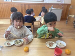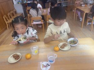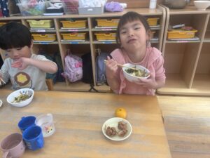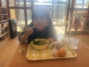 ほうとうの麺と醤油味のスープの組み合わせは美味しいと好評!子供たちは食べやすかったようです😊