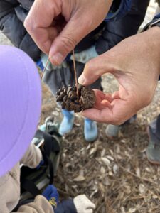 今日は枝拾いのあとに自然観察会がありました。