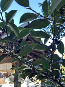 この木は高くて葉っぱに触れないので