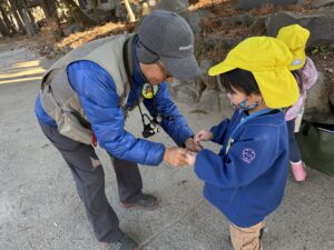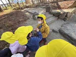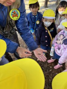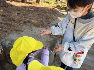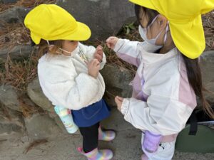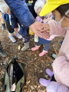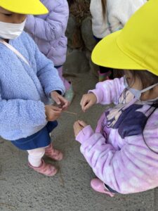 まず始めに万力公園で自然遊びをした”まつ”の葉で遊びました!