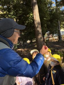 あきら先生が違う神社から見つけて来た松ぼっくりの葉の大きさは浅間神社にある松ぼっくりの3倍近くありました!「大王松」と書いて「だいおうしょう」と読むそうです!