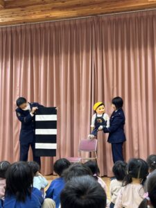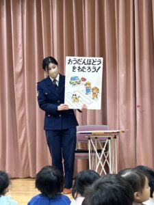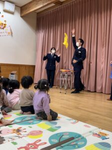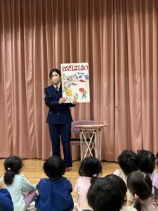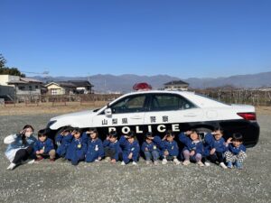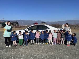 お話を聞いたあとは、さちかぜ号とパトカーを