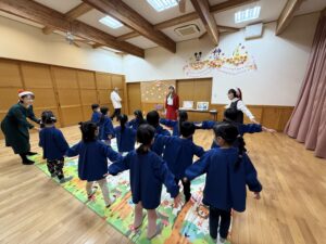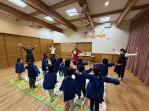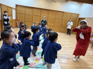 いつもは「種から木になる」体操でしたが、今回はクリスマスイブということもあり「サンタクロース」体操でした!
