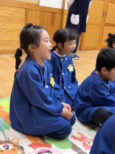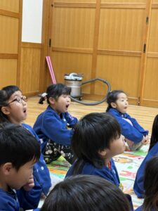 体操が終わると、何度も繰り返し行なってきた「あ・い・う・え・お」の口の形の真似をします!