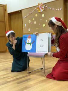 読めなかったお友だちもイラストを見て「雪だるま!」と大きな声で答えられていました!
