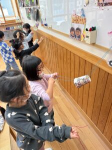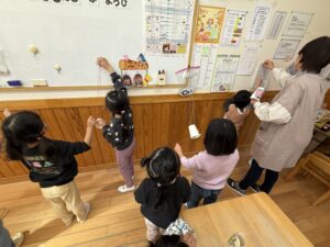 紐を広げながら引っ張ると上に登り、閉じるとしゅーーー!っと下に降りてくるサンタに笑いが起きるほしぐみさんでした!