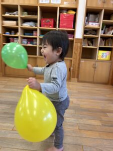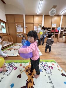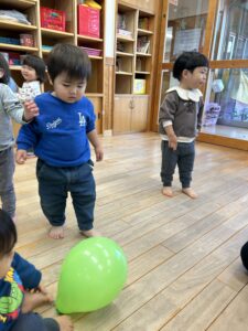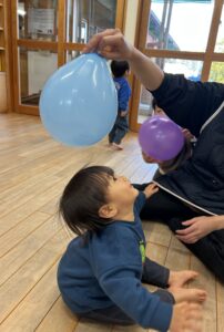 今日は風が強くて寒かったので、室内で風船遊びを楽しみました!✨️
