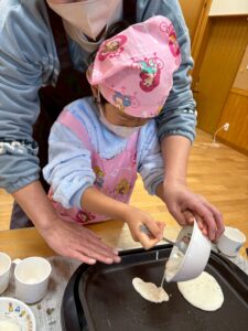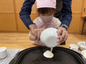 今日はほし組のみんなとおやつの「米粉パンケーキ」作りに挑戦しました✨