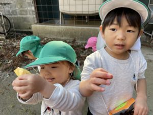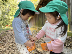 もも組のお兄さんたちが木の実を分けてくれました💛
