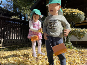 うさぎ組2歳児さんは、もも組さんと一緒に神社へお散歩に行きました🐾
