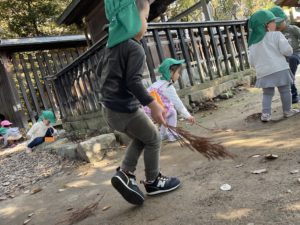 枝や硬い葉っぱをほうきに見立ててお掃除です🧹🍂