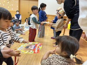 1月生まれのお友だちは全員で5人ですが、2人お休みだったので、今日のお誕生日会は3人でした。