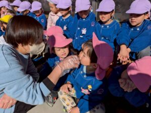 保育園に戻り、園長先生にやり方を教えてもらいました。