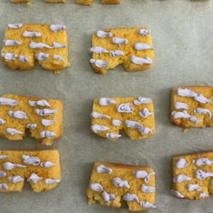 「鬼のパンツケーキ」です。かぼちゃの入った米粉ケーキは子供達に人気です🎃